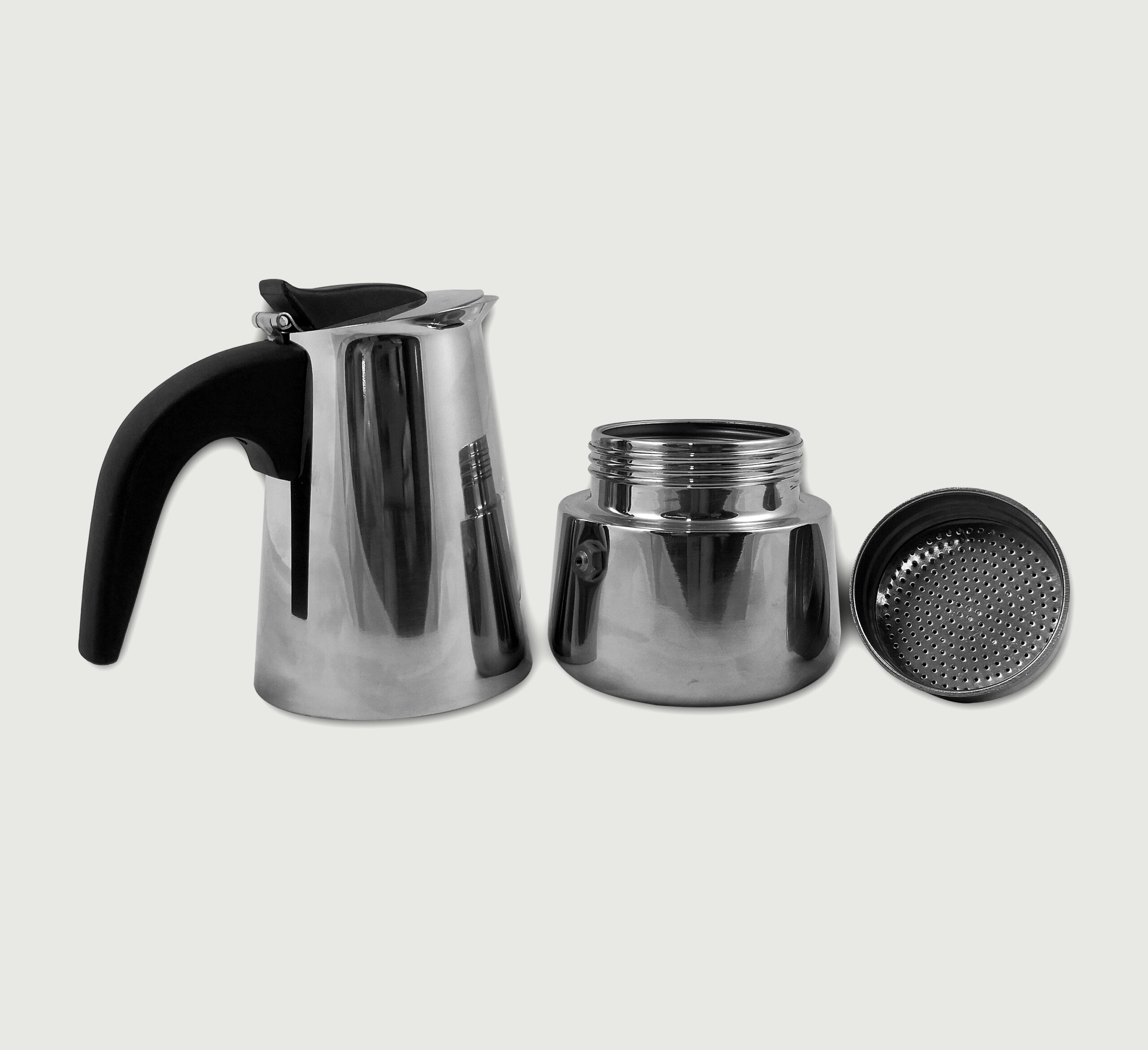 Caffettiera Harmony in acciaio a induzione in acciaio di alta qualità, dallo stile essenziale e dalle forme armoniose: caldaia in acciaio e raccoglitore in alluminio; manico ergonomico per una presa confortevole; massima sicurezza grazie alla valvola di sicurezza brevettata, ispezionabile e di facile pulizia. Adatta a tutti i piani di cottura, inclusa l’induzione.
