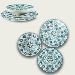 Insalatiera con posate in melamina decoro Spring. Materiale resistente e lavabile in lavastoviglie che garantisce grande leggerezza e robustezza.