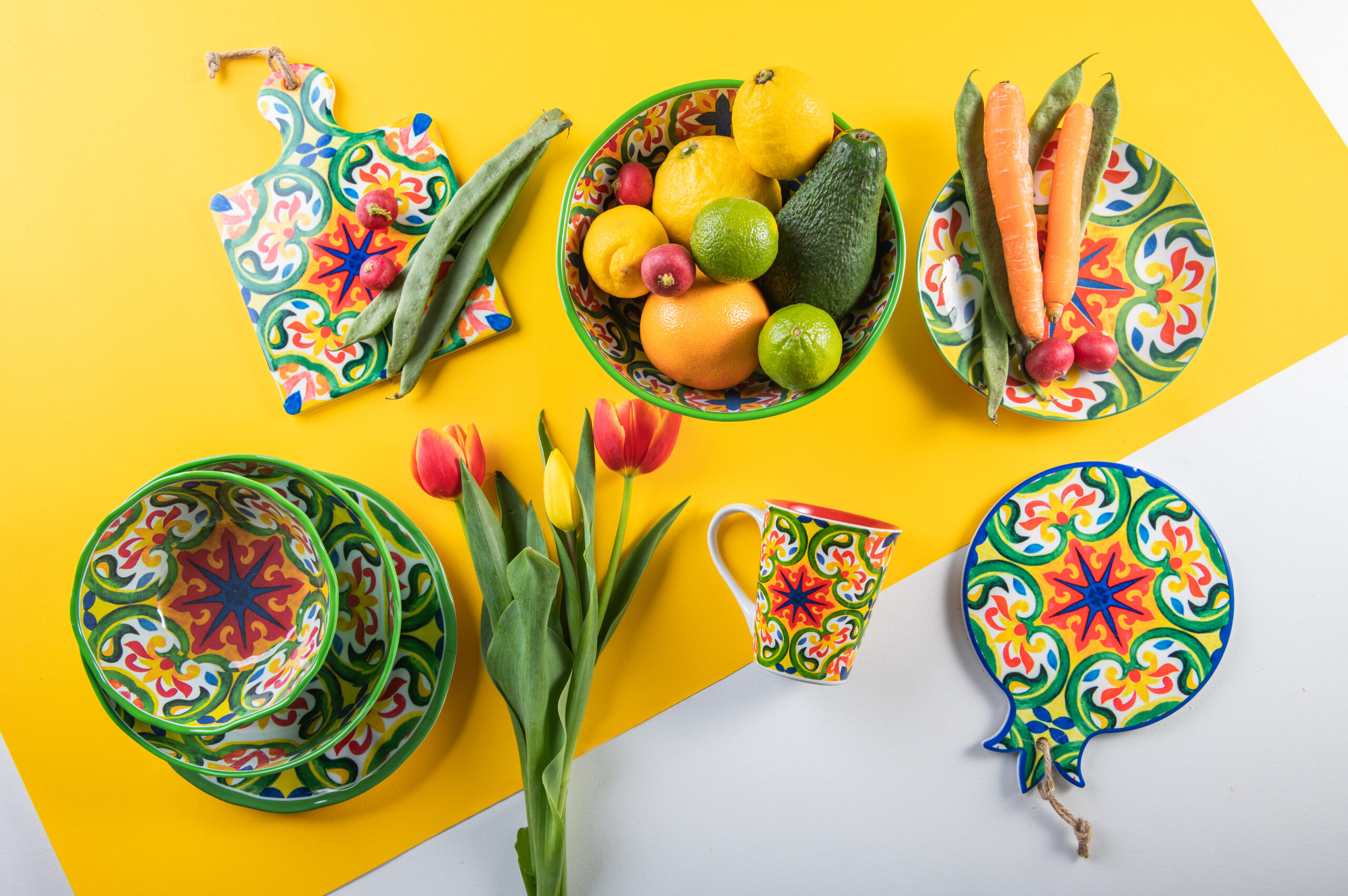 Insalatiera in melamina decoro Tenerife. Materiale resistente e lavabile in lavastoviglie che garantisce grande leggerezza e robustezza. Disponibile in più dimensioni.