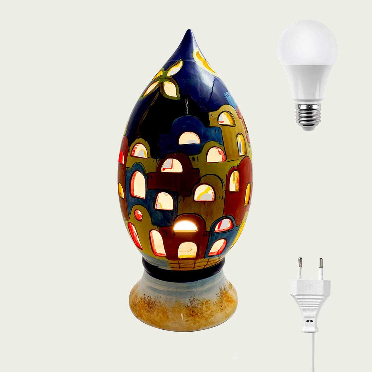 Lampada Decorata In Ceramica Lampada decorata in ceramica disponibile in tre dimensioni, compresa di cavo e lampadina interna.