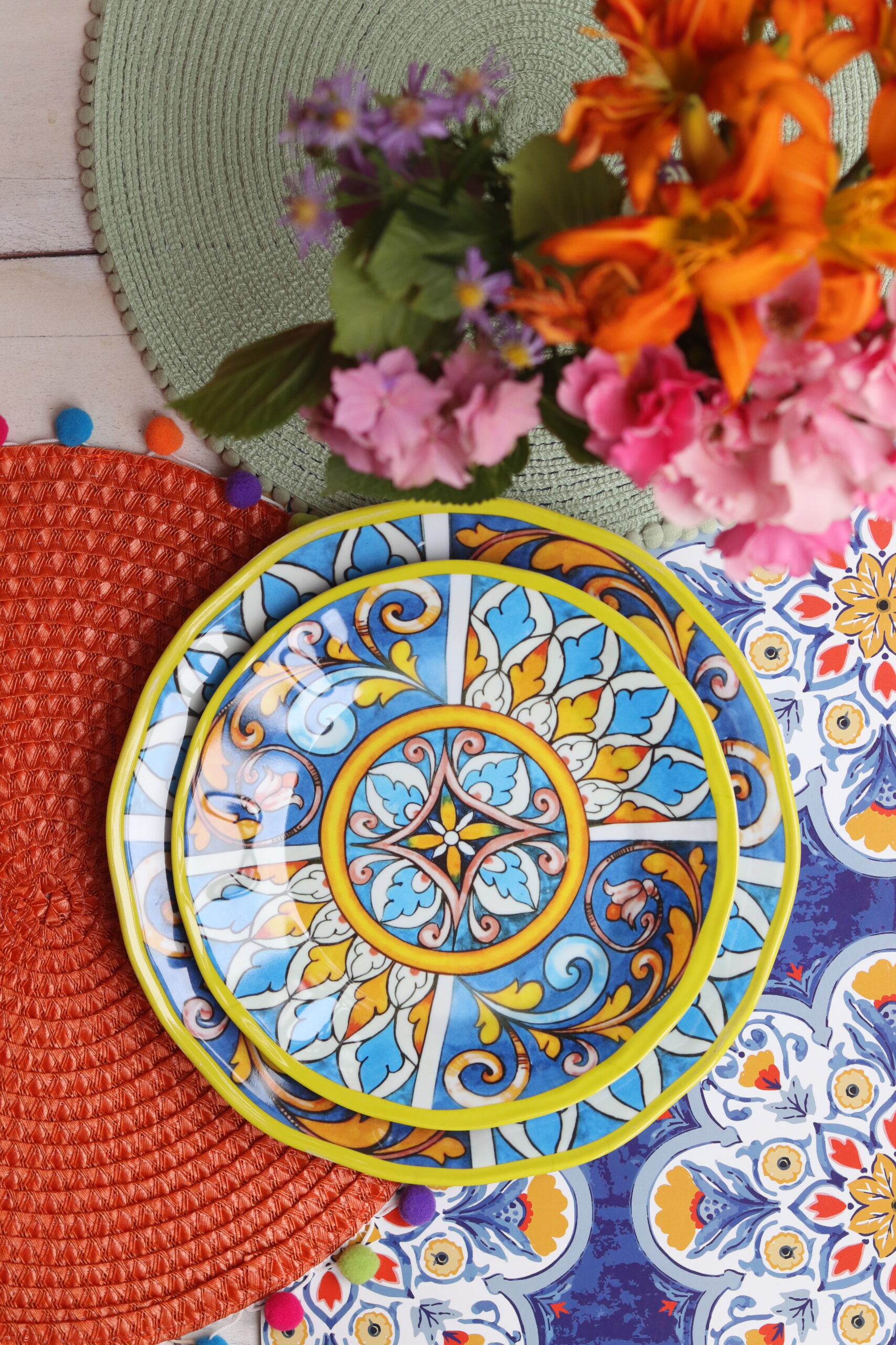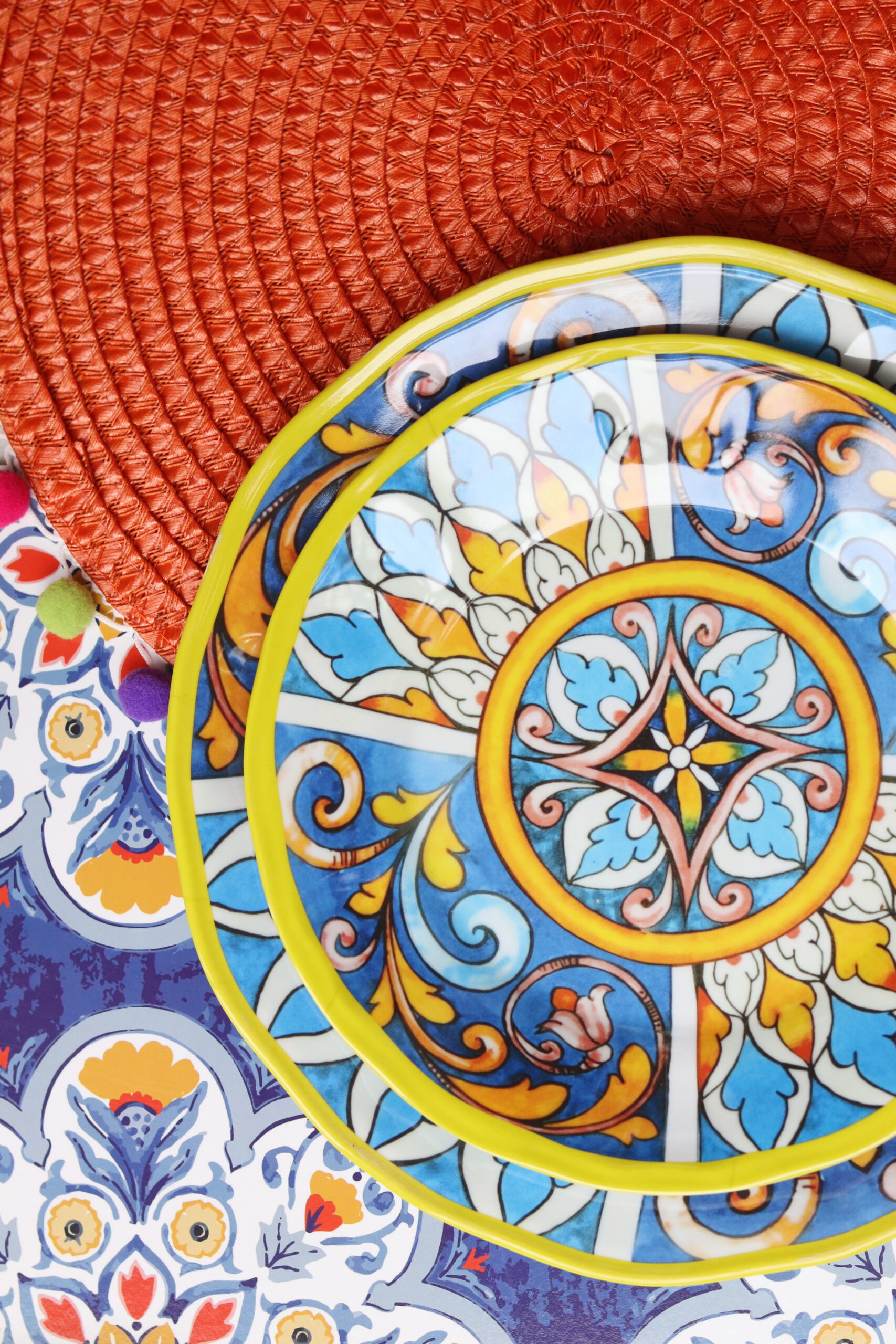 PIATTO PIANO ROTONDO IN MELAMINA DECORO FUERTEVENTURA
