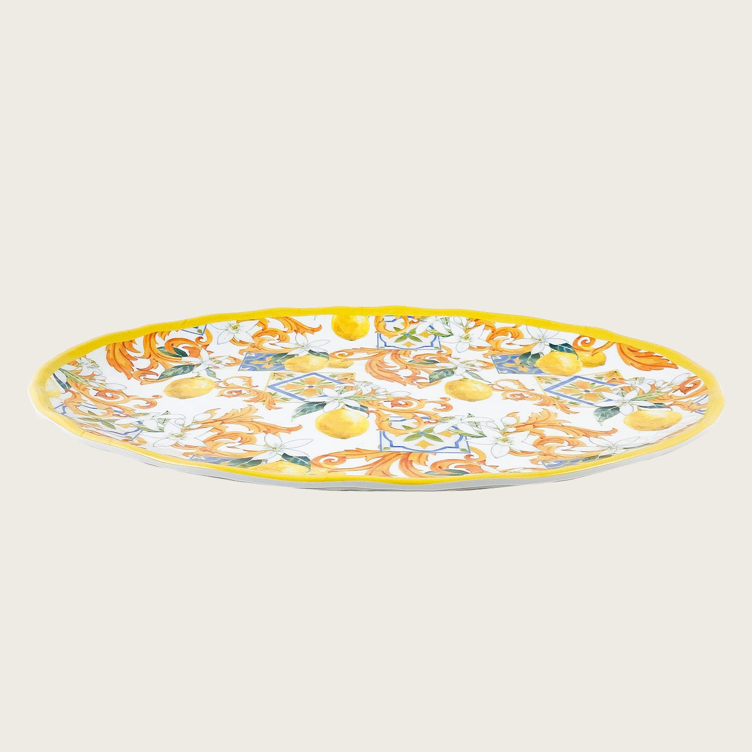 Piatto Piano Ovale In Melamina Decoro Lemon