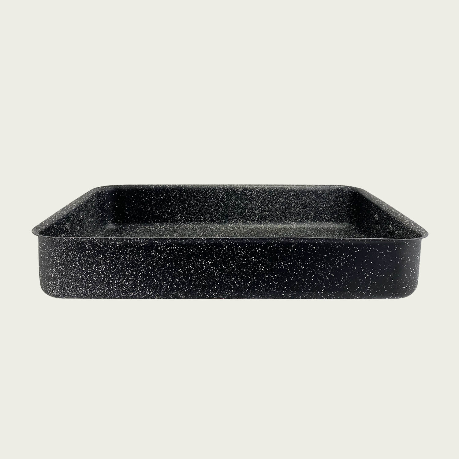 Rostiera Vulcania in alluminio. Ideale per cucinare le tue pietanze; rivestimento antiaderente rinforzato. Lavabile in lavastoviglie.