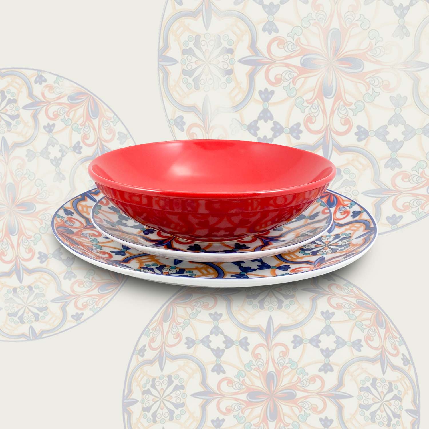 Servizio 18 Piatti Coordinati Rabat Red In Porcellana.