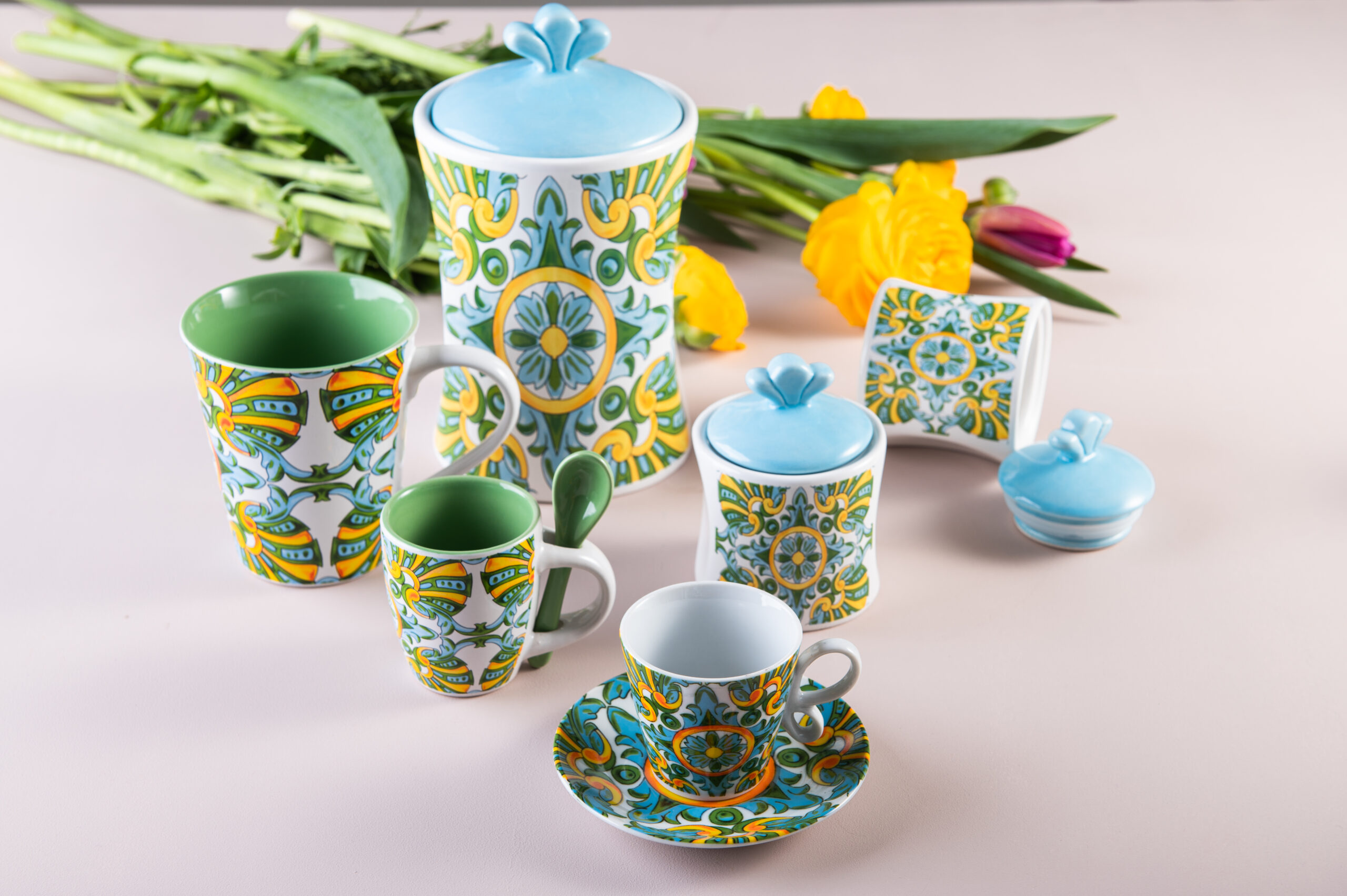 Set 6 bicchierini da caffe’ Smeraldo realizzati in fine porcellana.