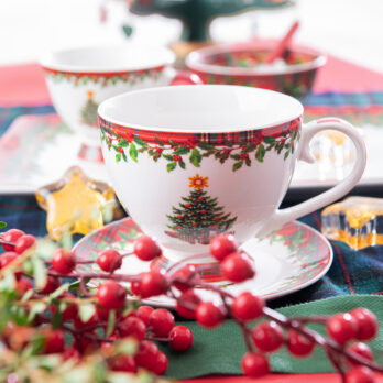 Tazza scottish tree con piattino in porcellana