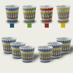 Realizzati in melamina, possono essere lavati in lavastoviglie (a una temperatura massima di 70°), risultano molto semplici da pulire
